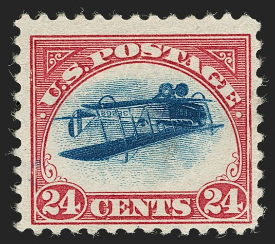 IT IS GENUINE, PREVIOUSLY HINGED, WITH A TINY THIN SPOT JUST BELOW THE "JENNY" AND FAINT TRACES OF PURPLE INK ABOVE THE BOTTOM LEFT "24".