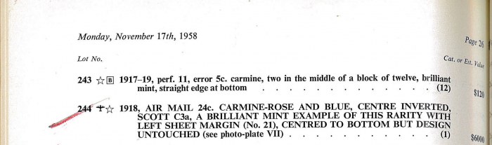 1918, AIR MAIL 24c CARMINE-ROSE AND BLUE, CENTRE INVERTED, SCOTT C3a, A BRILLIANT MINT EXAMPLE OF THIS RARITY WITH LEFT SHEET MARGIN (No. 21), CENTRED TO BOTTOM BUT DESIGN UNTOUCHED.