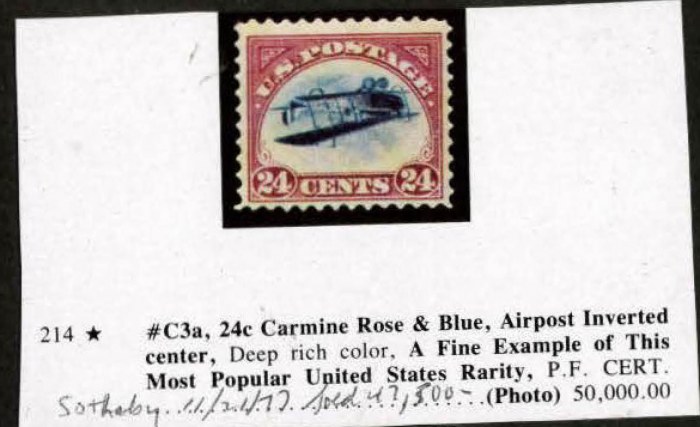 C3a, 24c Carmine Rose & Blue, Airpost Inverted