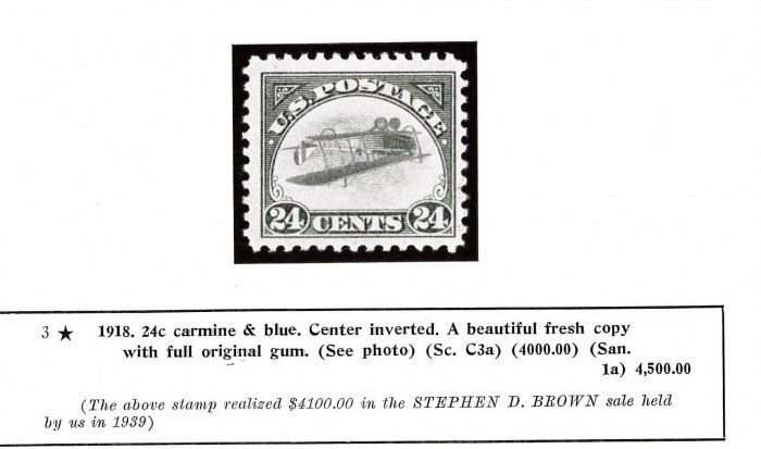 (The above stamp realized $4100.00 in the STEPHEN D. BROWN sale held by us in 1939)