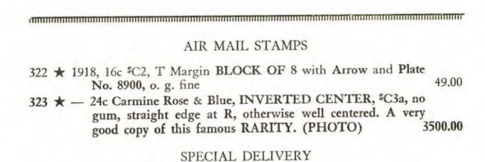 24c Carmine Rose & Blue, INVERTED CENTER, C3a, no gum, straight edge at R, otherwise well centered. A very good copy of this famous RARITY.