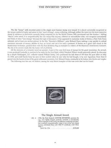 1918,24c First Airmail, CENTER INVERTED, position 58, o.g., very lightly hinged, perfectly centered, a wonderfully choice example of this rarity, the fabulous centering and flawless condition unquestionably make it one of the very finest known, extremely fine; with 1985 P.F. certificate. Color Photo Plate 7