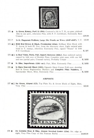 24c Carmine Rose & Blue, Airpost Inverted Center (C3a). Str. edge at right, Very Fine Copy of this Famous Rarity