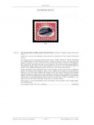 VERY FINE. ONE OF THE FRESHEST AND CHOICEST EXAMPLES OF THE FAMOUS INVERTED JENNY.