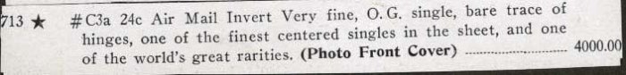 # C3a 24c Air Mail Invert Very fine, O.G. single, bare trace of hinges, one of the finest centered singles in the sheet, and one of the world's great rarities. (Photo Front Cover)
