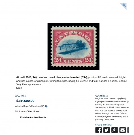 Airmail, 1918, 24ยข carmine rose & blue, center inverted (C3a),