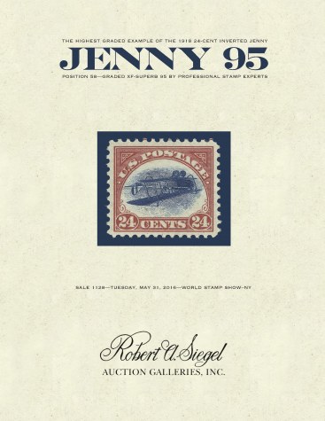 EXTREMELY FINE GEM. THIS MAGNIFICENT EXAMPLE OF THE 1918 24-CENT INVERTED JENNY IS GRADED XF-SUPERB 95 BY PROFESSIONAL STAMP EXPERTS. THIS STAMP HAS ALWAYS BEEN REGARDED AS ONE OF THE FINEST FROM THE ORIGINAL DISCOVERY SHEET OF 100. IT IS THE ONLY INVERTED JENNY TO HAVE MET THE RIGOROUS STANDARDS FOR THE XF-SUPERB 95 GRADE.