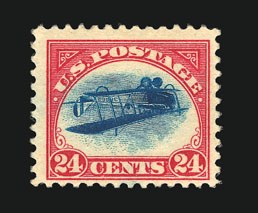 VERY FINE AND WONDERFULLY FRESH EXAMPLE OF THE FAMOUS 24-CENT INVERTED JENNY.