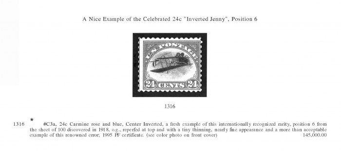 #C3a, 24c Carmine rose and blue, Center Inverted, a fresh example of this internationally recognized rarity, position 6 from the sheet of 100 discovered in 1918, o.g., reperfed at top and with a tiny thinning, nearly fine appearance and a more than acceptable